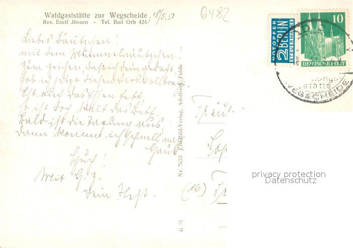 73749568 alte Postkarte Bad Orb Waldgaststaette zur Wegscheide Fliegeraufnahme postalisch gelaufen Erhaltung siehe scans [WerneD78] KatCode: 11110006435001