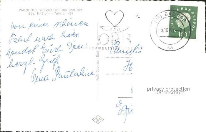 72130637 alte Postkarte Bad Orb Waldhotel Wegscheide Gastraum postalisch gelaufen Erhaltung siehe scans KatCode: 11110006435001