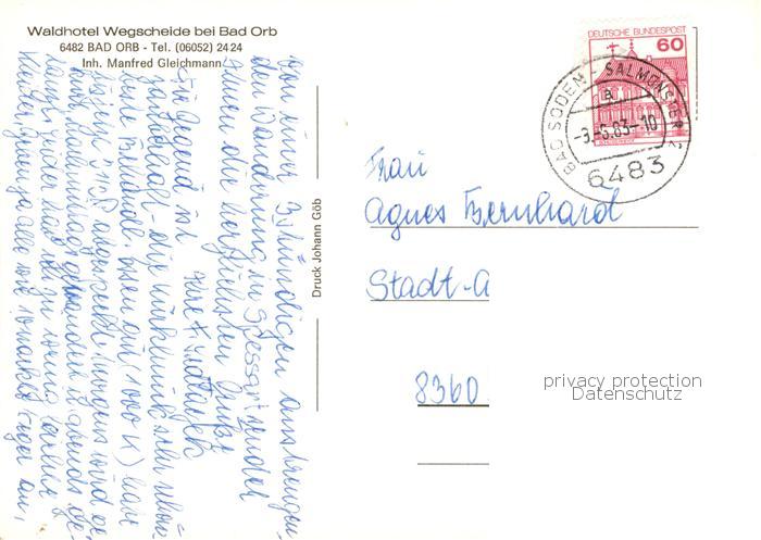 73856806 alte Postkarte Bad Orb Waldhotel Wegscheide postalisch gelaufen Erhaltung siehe scans [WerneD78] KatCode: 11110006435001