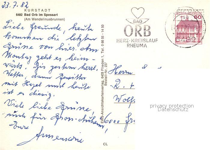 72990331 alte Postkarte Bad Orb Wendelinusbrunnen Fachwerk postalisch gelaufen Erhaltung siehe scans [LiesaD40] KatCode: 11110006435001