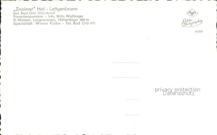 72130644 Bad Orb Znaimer Hof Gaststube postalisch nicht gelaufen Erhaltung siehe scans KatCode: 11110006435001