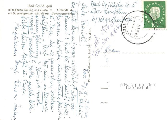 73293165 alte Postkarte Bad Oy Fliegeraufnahme mit Saeuling und Zugspitze Daumengruppe Mittelberg Schwesternheim postalisch gelaufen Erhaltung siehe scans [LiesaD40] KatCode: 11110009780128
