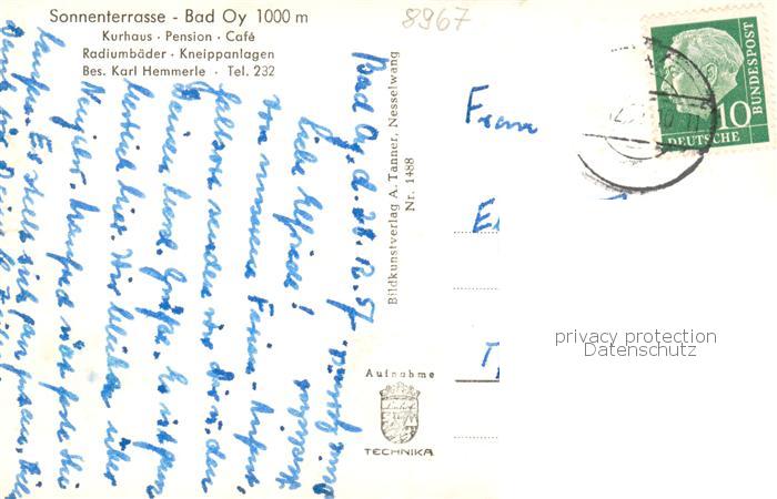 73797323 alte Postkarte Bad Oy-Mittelberg Cafe Sonnenterrasse Kurhaus Pension postalisch gelaufen Erhaltung siehe scans [WerneD78] KatCode: 11110009780128