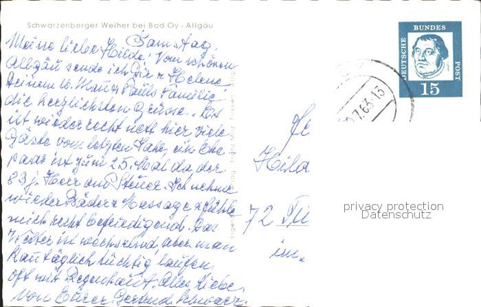 72193455 alte Postkarte Bad Oy Schwarzenberger Weiher postalisch gelaufen Erhaltung siehe scans KatCode: 11110009780128
