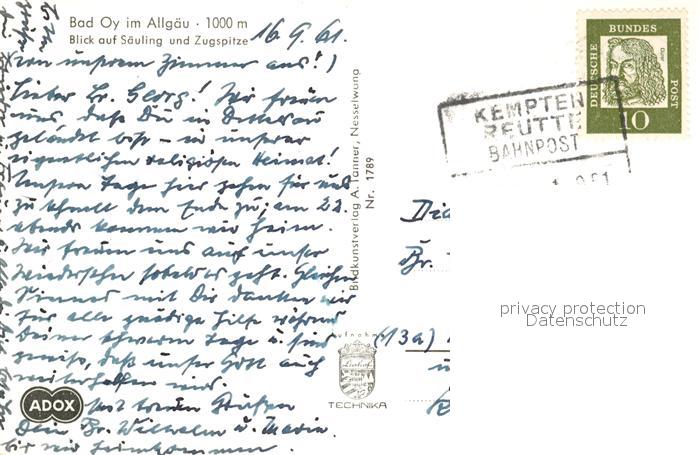 73575599 alte Postkarte Bad Oy S?uling Zugspitze postalisch gelaufen Erhaltung siehe scans [LiesaD40] KatCode: 11110009780128