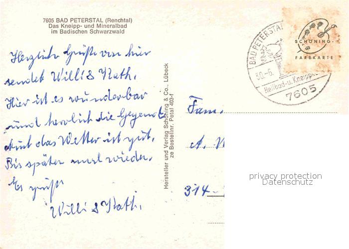 72867402 alte Postkarte Bad Peterstal-Griesbach postalisch gelaufen Erhaltung siehe scans [NatalD47] KatCode: 11110008317008