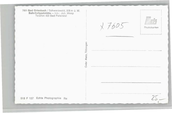 40713550 Bad Peterstal-Griesbach Bahnhofs Gaststätte KatCode 11110008317008