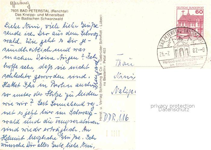 72911971 alte Postkarte Bad Peterstal-Griesbach Brunnen postalisch gelaufen Erhaltung siehe scans [NatalD47] KatCode: 11110008317008