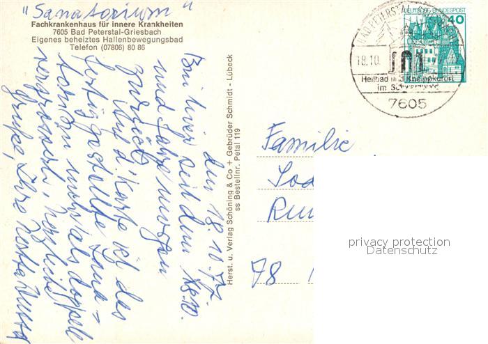73520673 alte Postkarte Bad Peterstal-Griesbach Fachkrankenhaus f?r innere Krankheiten postalisch gelaufen Erhaltung siehe scans [LiesaD40] KatCode: 11110008317008