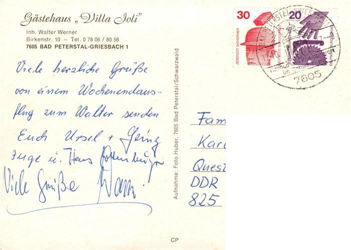 73880741 alte Postkarte Bad Peterstal-Griesbach Gaestehaus Villa Joli postalisch gelaufen Erhaltung siehe scans [FriedD77] KatCode: 11110008317008