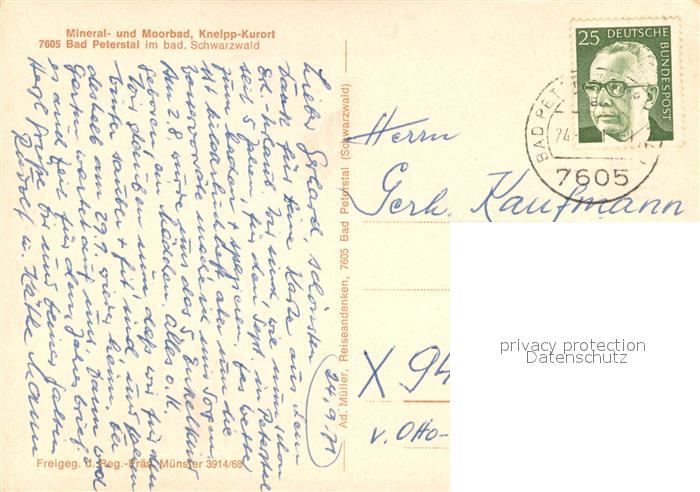 73686941 alte Postkarte Bad Peterstal-Griesbach Kneipp-Kurort im Schwarzwald Fliegeraufnahme postalisch gelaufen Erhaltung siehe scans [FriedD77] KatCode: 11110008317008
