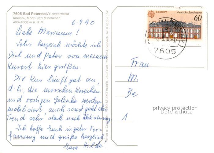 73597207 alte Postkarte Bad Peterstal-Griesbach Kneipp Moor und Mineralbad postalisch gelaufen Erhaltung siehe scans [WerneD78] KatCode: 11110008317008