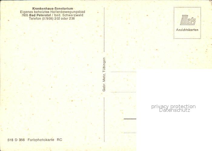 72543756 Bad Peterstal-Griesbach Krankenhaus Schwimmbad postalisch nicht gelaufen Erhaltung siehe scans [LiesaD40 kv019box] KatCode: 11110008317008