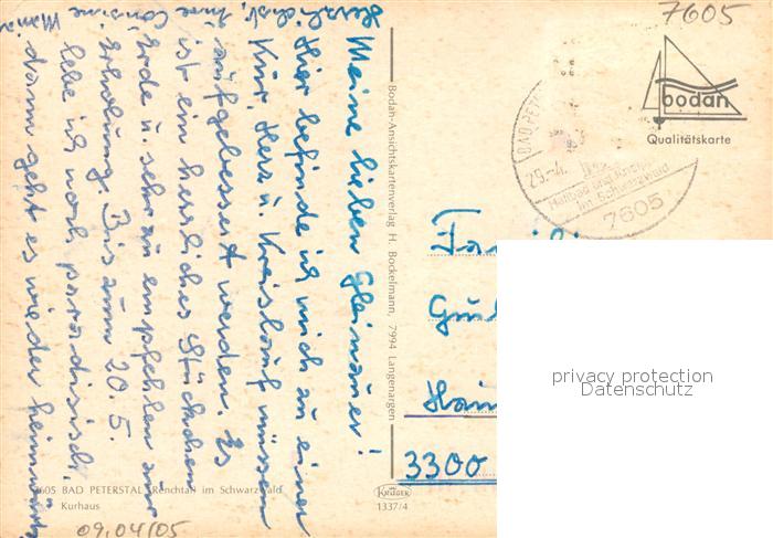 73061710 alte Postkarte Bad Peterstal-Griesbach Kurhaus postalisch gelaufen Erhaltung siehe scans [WerneD78] KatCode: 11110008317008