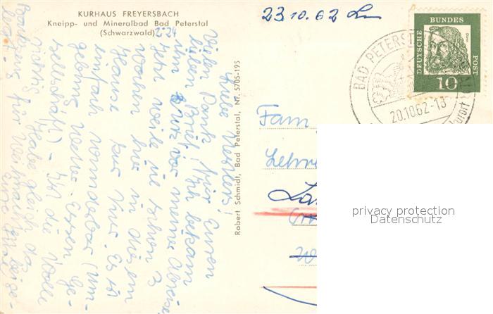 73645102 alte Postkarte Bad Peterstal-Griesbach Kurhaus Freyersbach postalisch gelaufen Erhaltung siehe scans [WerneD78] KatCode: 11110008317008