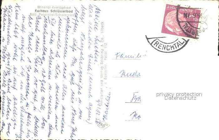 72194650 alte Postkarte Bad Peterstal-Griesbach Kurhaus Schluesselbad postalisch gelaufen Erhaltung siehe scans KatCode: 11110008317008