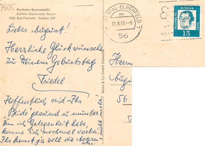 73894392 alte Postkarte Bad Peterstal-Griesbach Kurheim Sonnenbuehl postalisch gelaufen Erhaltung siehe scans [WerneD78] KatCode: 11110008317008