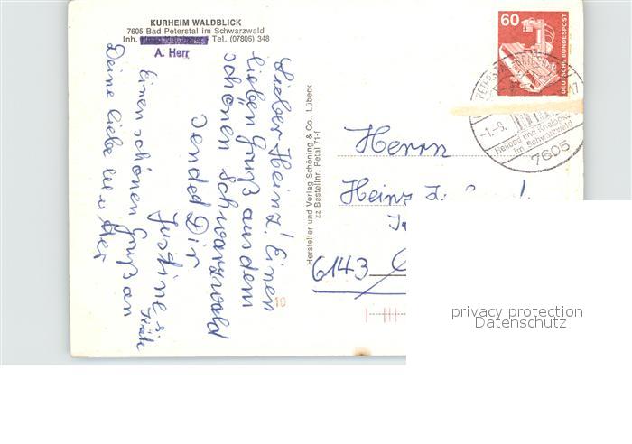 72510649 alte Postkarte Bad Peterstal-Griesbach Kurheim Waldblick postalisch gelaufen Erhaltung siehe scans KatCode: 11110008317008