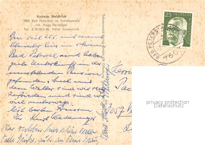 73653104 alte Postkarte Bad Peterstal-Griesbach Kurheim Waldblick postalisch gelaufen Erhaltung siehe scans [WerneD78] KatCode: 11110008317008