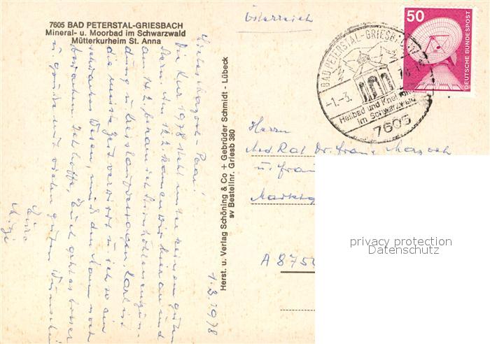73611072 alte Postkarte Bad Peterstal-Griesbach M?tterkurheim St. Anna postalisch gelaufen Erhaltung siehe scans [LiesaD40] KatCode: 11110008317008