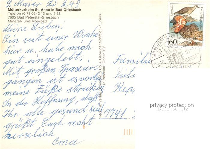 73543642 alte Postkarte Bad Peterstal-Griesbach Muetterkurheim St Anna postalisch gelaufen Erhaltung siehe scans [WerneD78] KatCode: 11110008317008
