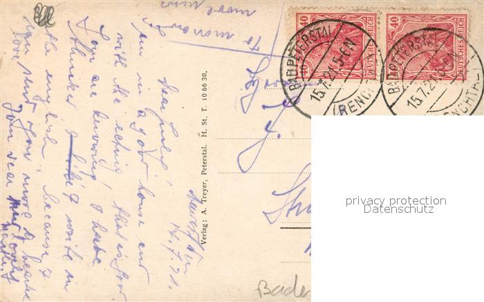 43496860 alte Postkarte Bad Peterstal-Griesbach Panorama postalisch gelaufen Erhaltung siehe scans [KathaD81] KatCode: 11110008317008
