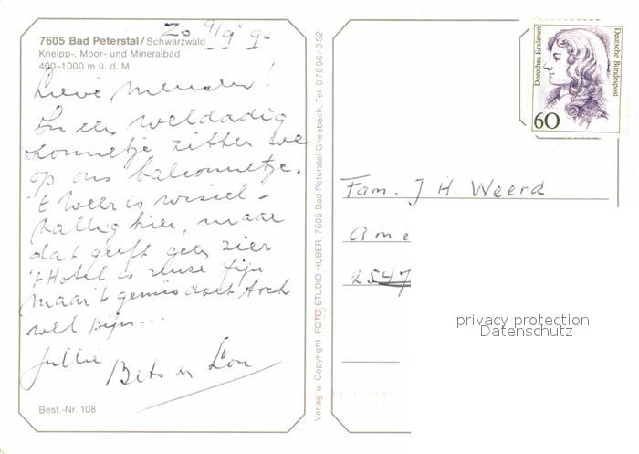 72860390 alte Postkarte Bad Peterstal-Griesbach Teilansicht postalisch gelaufen Erhaltung siehe scans [WerneD78] KatCode: 11110008317008