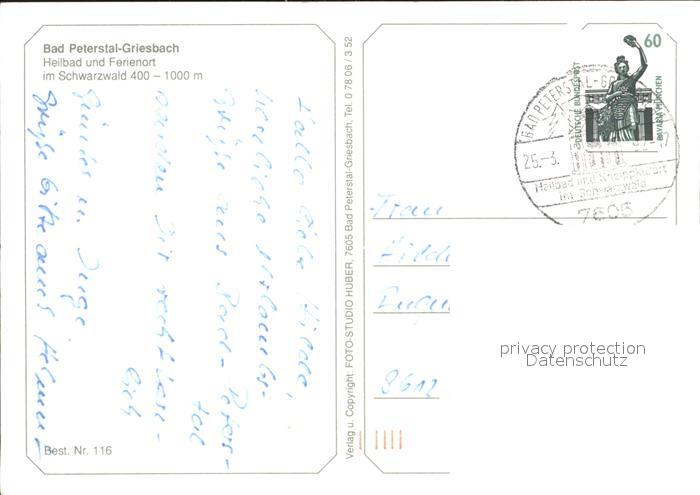 72369854 alte Postkarte Bad Peterstal-Griesbach Teilansicht Heilbad und Ferienort Schwarzwald postalisch gelaufen Erhaltung siehe scans KatCode: 11110008317008