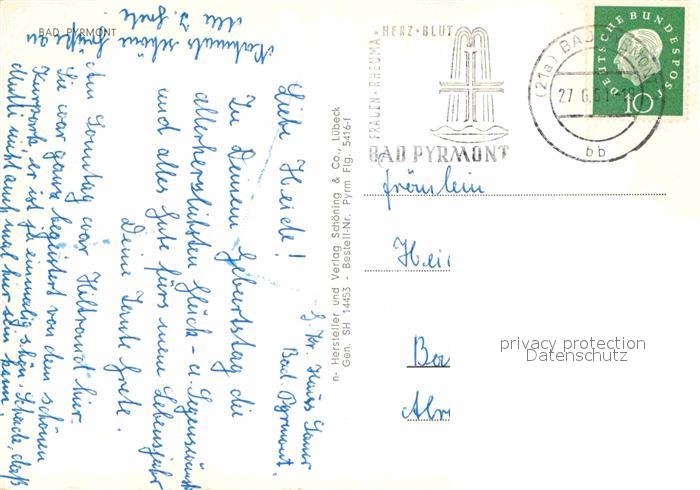 72852082 alte Postkarte Bad Pyrmont postalisch gelaufen Erhaltung siehe scans [NatalD47] KatCode: 11110003252003