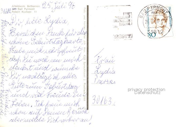 73017268 alte Postkarte Bad Pyrmont Altenheim Bethanien postalisch gelaufen Erhaltung siehe scans [NatalD47] KatCode: 11110003252003