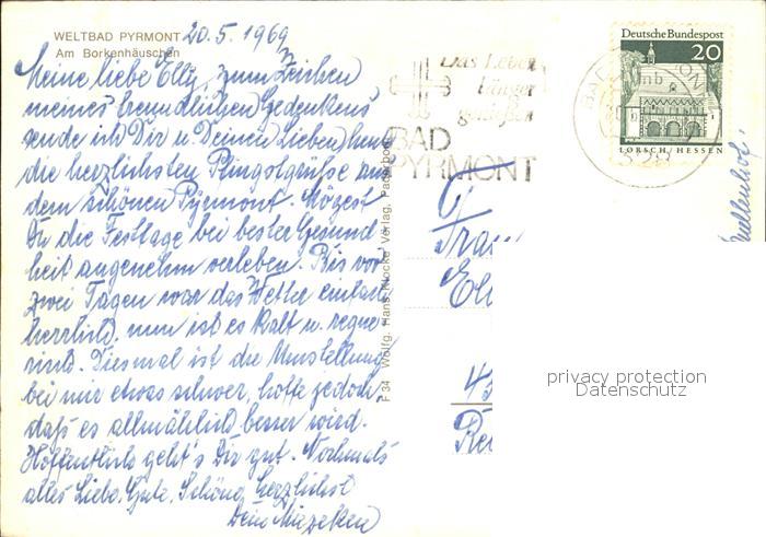 72528094 alte Postkarte Bad Pyrmont Am Borkenhaeuschen Schwanenteich postalisch gelaufen Erhaltung siehe scans KatCode: 11110003252003