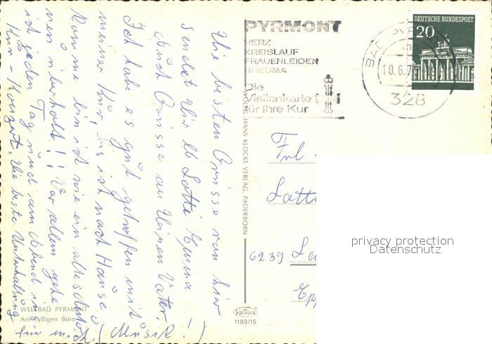 72396443 alte Postkarte Bad Pyrmont Am hylligen Born postalisch gelaufen Erhaltung siehe scans KatCode: 11110003252003