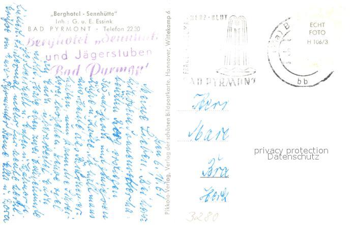 73681352 alte Postkarte Bad Pyrmont Berghotel Sennhuette postalisch gelaufen Erhaltung siehe scans [LiesaD40] KatCode: 11110003252003