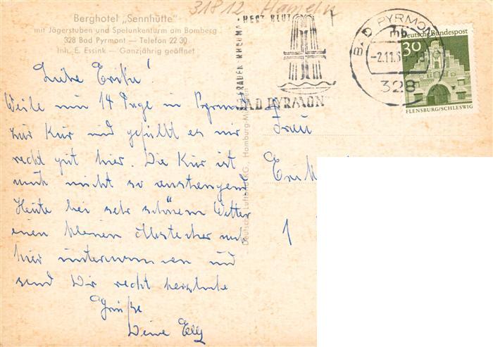 73880905 alte Postkarte Bad Pyrmont Berghotel Sennhuette postalisch gelaufen Erhaltung siehe scans [FriedD77] KatCode: 11110003252003