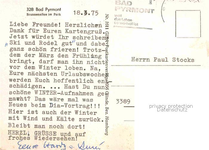 72916358 alte Postkarte Bad Pyrmont Brunnenallee im Park postalisch gelaufen Erhaltung siehe scans [FriedD77] KatCode: 11110003252003