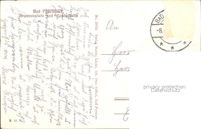 72251217 alte Postkarte Bad Pyrmont Brunnenplatz mit Wandelhalle postalisch gelaufen Erhaltung siehe scans KatCode: 11110003252003