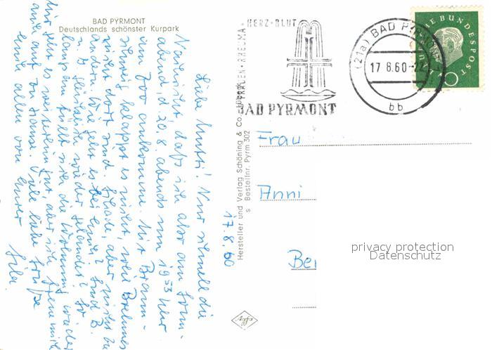 72688109 alte Postkarte Bad Pyrmont Deutschlands schoenster Kurpark postalisch gelaufen Erhaltung siehe scans [FriedD77] KatCode: 11110003252003