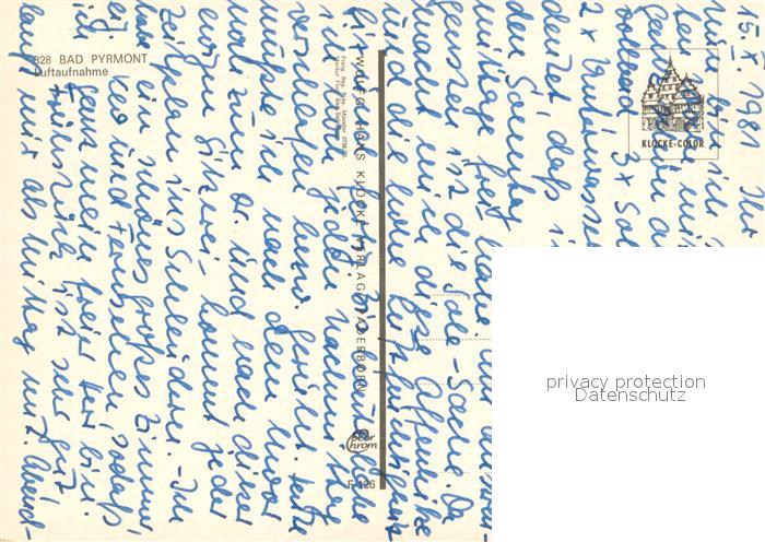 73713883 alte Postkarte Bad Pyrmont Fliegeraufnahme postalisch gelaufen Erhaltung siehe scans [WerneD78] KatCode: 11110003252003