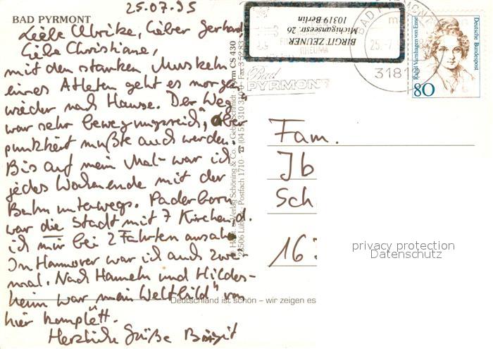 73164340 alte Postkarte Bad Pyrmont Fliegeraufnahme postalisch gelaufen Erhaltung siehe scans [WerneD78] KatCode: 11110003252003