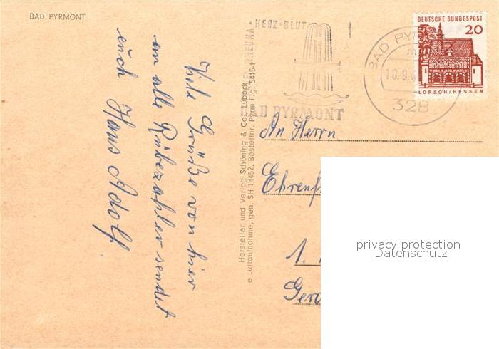 73007689 alte Postkarte Bad Pyrmont Fliegeraufnahme postalisch gelaufen Erhaltung siehe scans [WerneD78] KatCode: 11110003252003