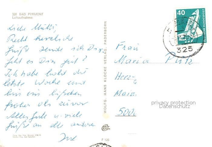 73792836 alte Postkarte Bad Pyrmont Fliegeraufnahme postalisch gelaufen Erhaltung siehe scans [WerneD78] KatCode: 11110003252003