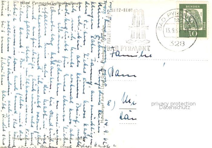 73769582 alte Postkarte Bad Pyrmont Fliegeraufnahme postalisch gelaufen Erhaltung siehe scans [WerneD78] KatCode: 11110003252003