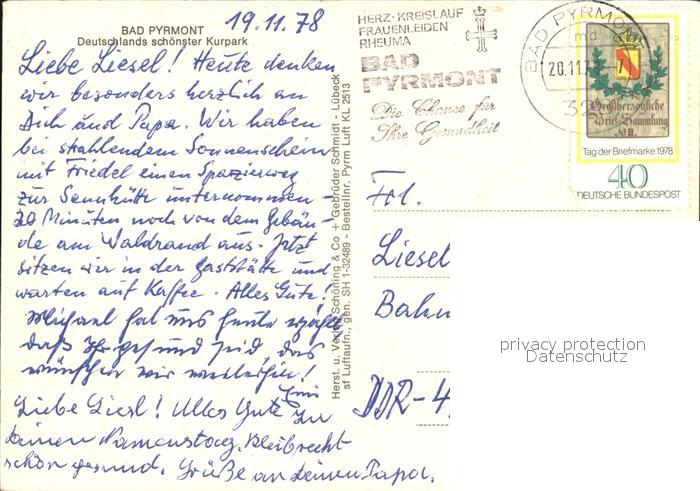 alte Postkarte Bad Pyrmont Fliegeraufnahme postalisch gelaufen Erhaltung siehe scans