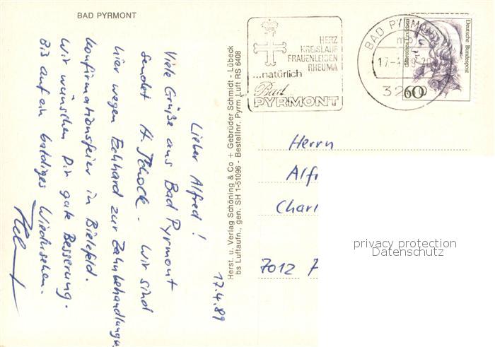 73764323 alte Postkarte Bad Pyrmont Fliegeraufnahme postalisch gelaufen Erhaltung siehe scans [FriedD77] KatCode: 11110003252003