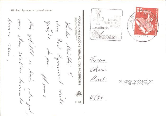 72016168 alte Postkarte Bad Pyrmont Fliegeraufnahme postalisch gelaufen Erhaltung siehe scans KatCode: 11110003252003
