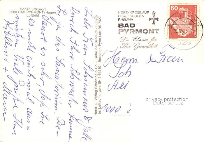 71860036 alte Postkarte Bad Pyrmont Fliegeraufnahme postalisch gelaufen Erhaltung siehe scans KatCode: 11110003252003