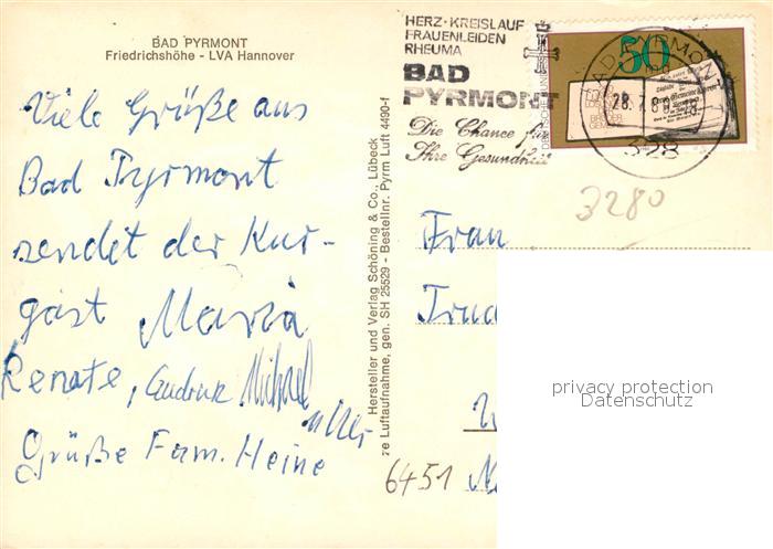 73613259 alte Postkarte Bad Pyrmont Fliegeraufnahme Friedichshoehe LVA Hannover postalisch gelaufen Erhaltung siehe scans [KathaD81] KatCode: 11110003252003