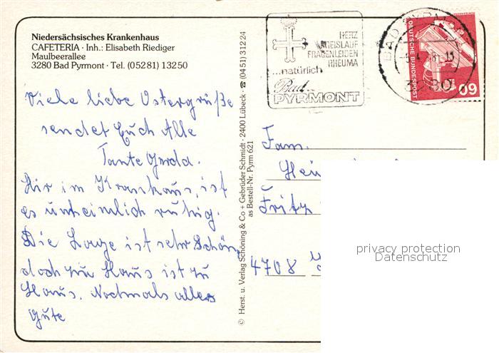 72966840 alte Postkarte Bad Pyrmont Fliegeraufnahme Niedersaechsiches Krankenhaus postalisch gelaufen Erhaltung siehe scans [LiesaD40] KatCode: 11110003252003
