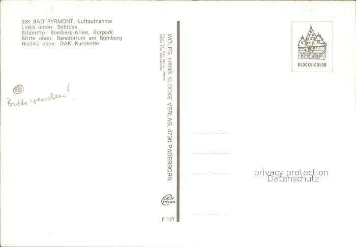 72049344 Bad Pyrmont Fliegeraufnahme Schloss Bomberg Allee Kurpark Kurcenter postalisch nicht gelaufen KatCode: 11110003252003