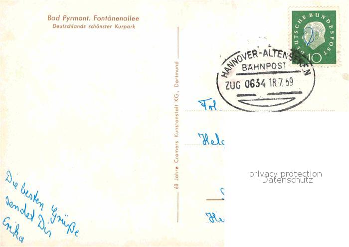 72824633 alte Postkarte Bad Pyrmont Fontaenenallee postalisch gelaufen Erhaltung siehe scans [AndreD76] KatCode: 11110003252003